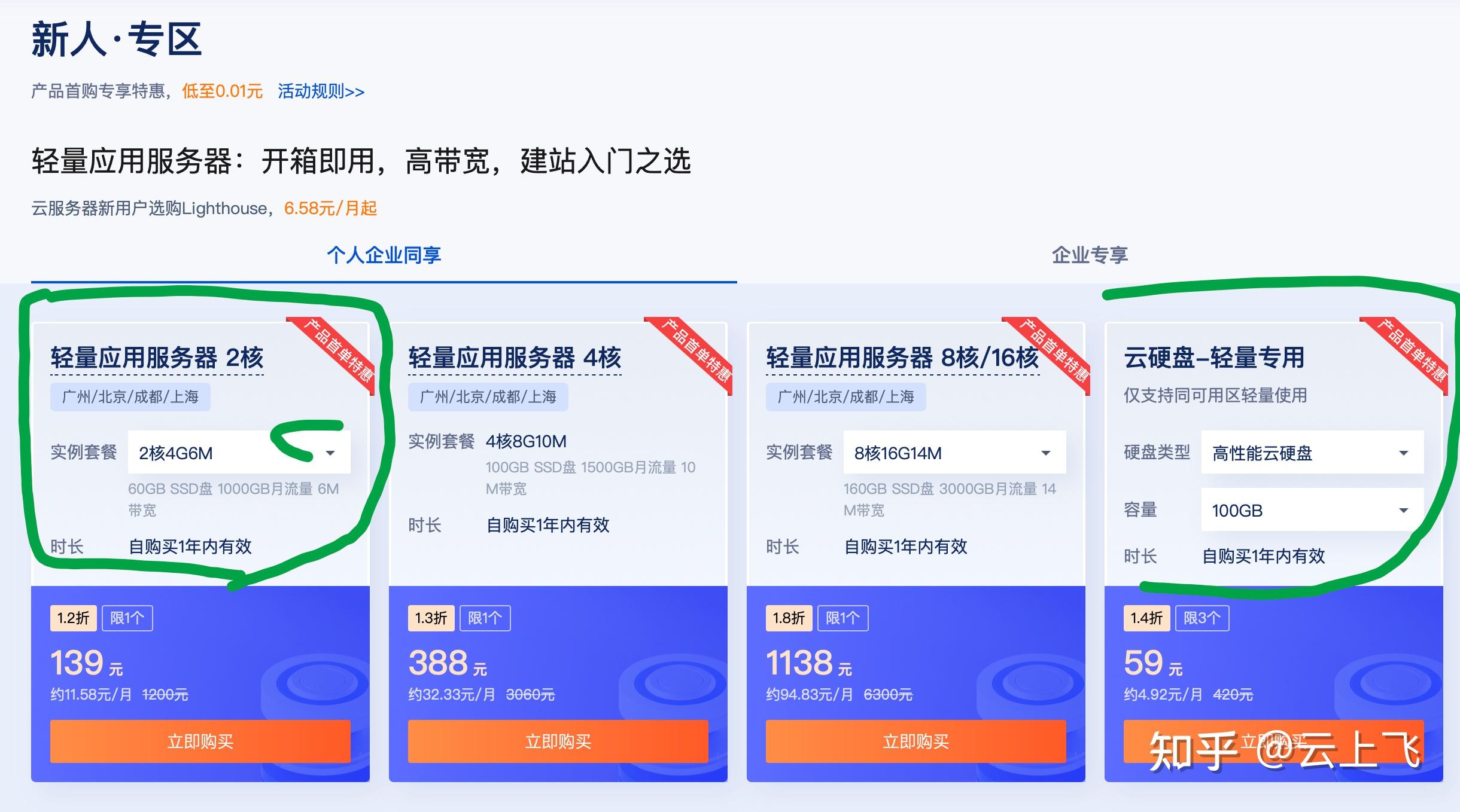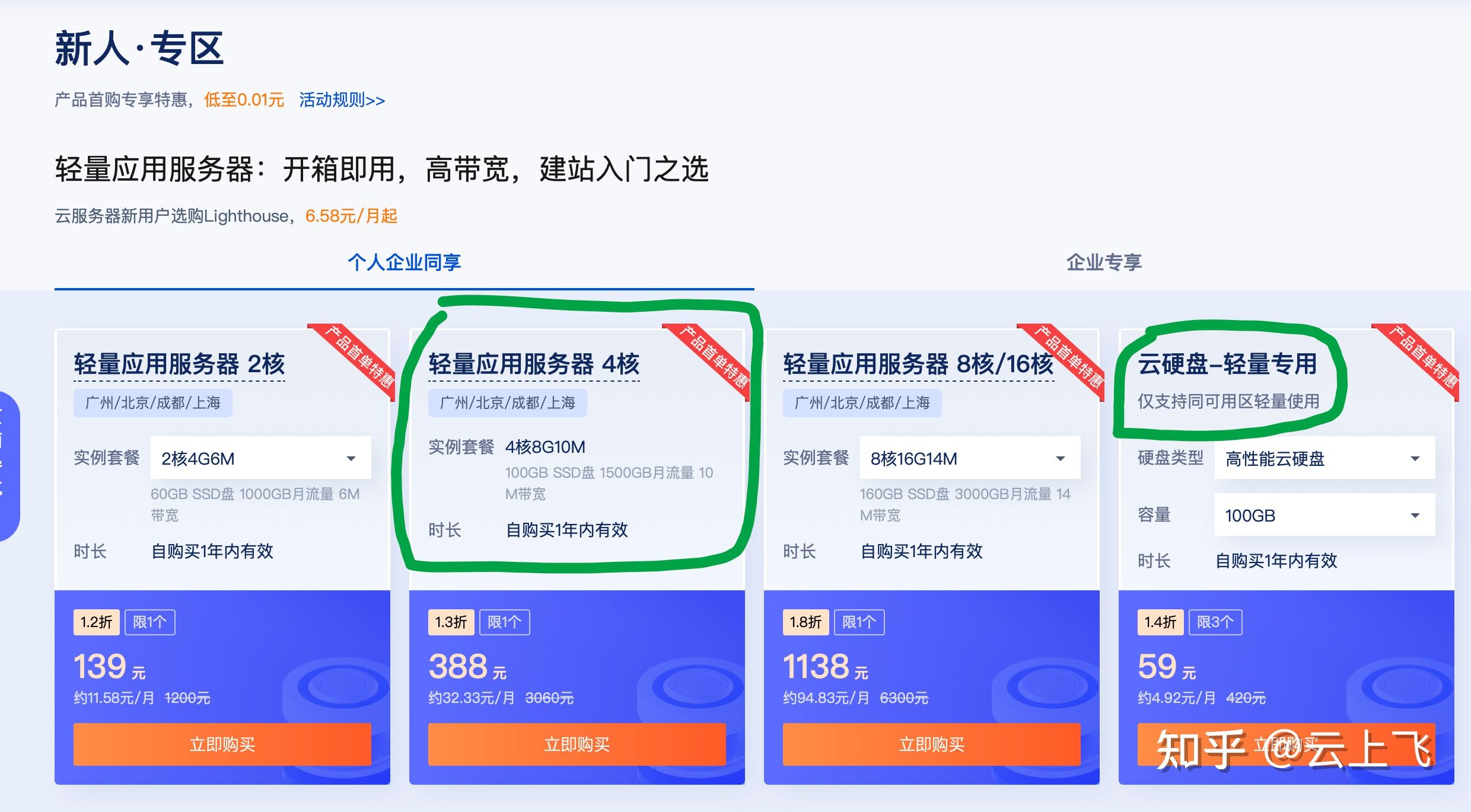 现在还有专门针对轻量应用服务器的云硬盘,容量从100G到1000G不等,最多可购买3块,有效解决了以前轻量没有办法挂载数据盘的痛点,只能委曲求全去买云服务器的问题。
