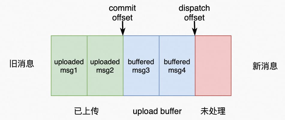 - dispatch offset:已经写入缓存但是未上传的消息位点