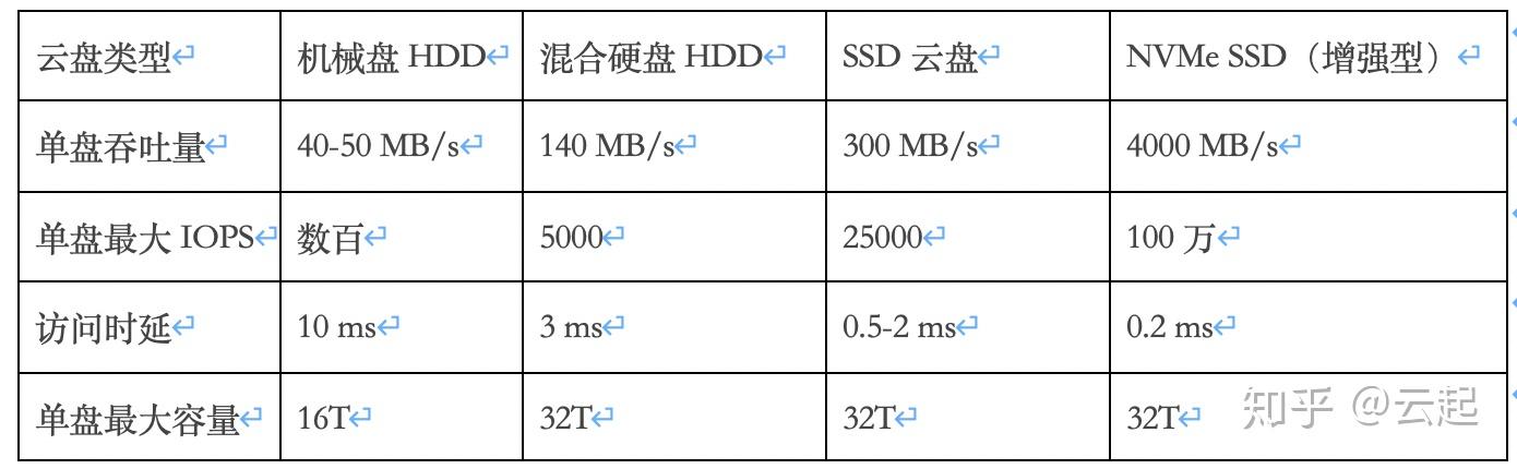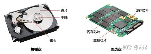 机械盘HDD是磁盘存储,包括盘片、磁头、主轴(电机)、控制器等组件。HDD数据读写时,磁盘控制器提供数据存储的CHS地址,主轴上的电机马达驱动盘片高速旋转,磁头可以沿盘片的半径方向移动,最终将存储数据的扇区转到磁头下进行读写。扇区(数据块)是最小存储数据的最小单元,通过LBA (Logical Block Addressing)的方式实现线性编址,上层应用通过LBA地址读数据块。磁盘常见的转速是7200 r/min或15000r/min,性能和吞吐量有一定限制。根据不同的存储访问接口协议,HDD盘分为SATA盘(串行ATA接口)容量大成本低,而SAS盘(串行SCSI连接)性能与可靠性更高。