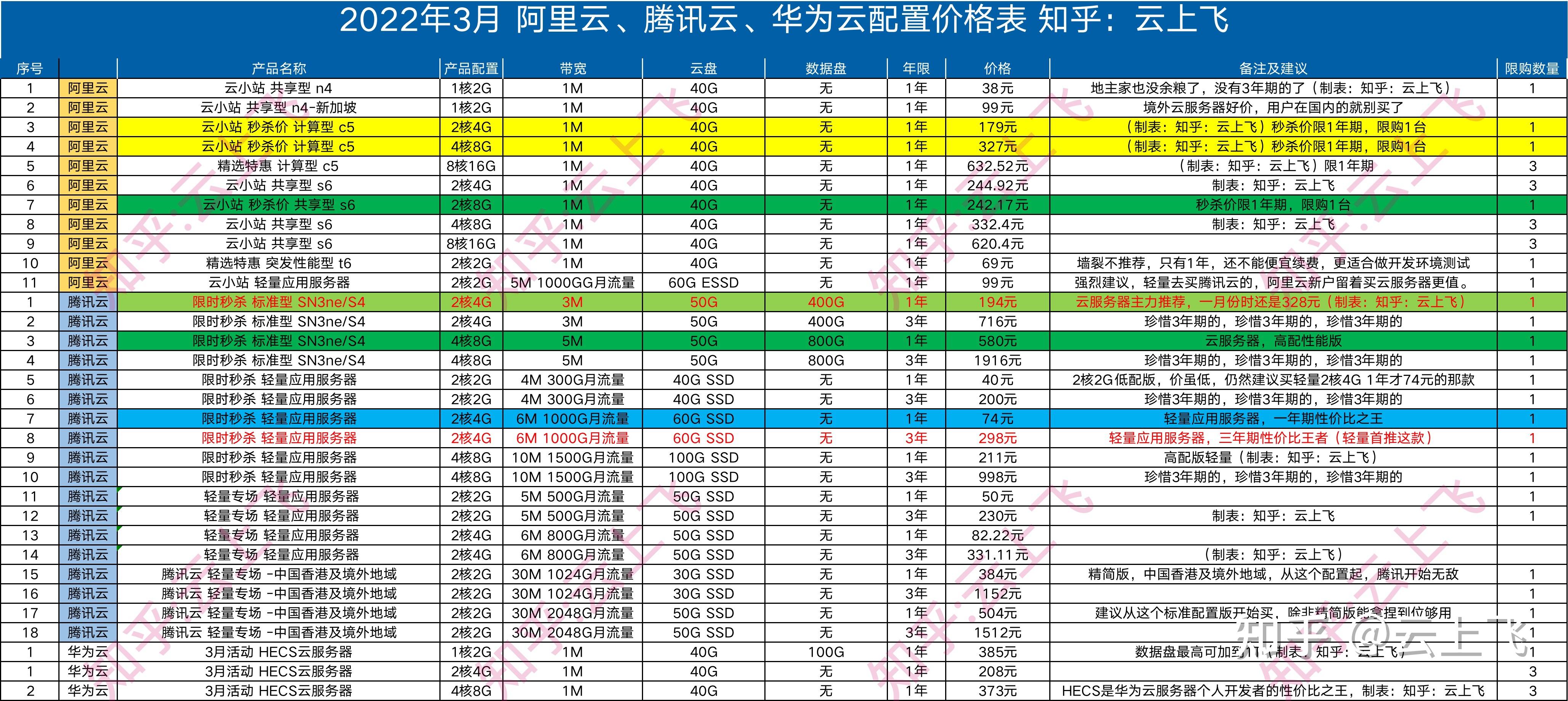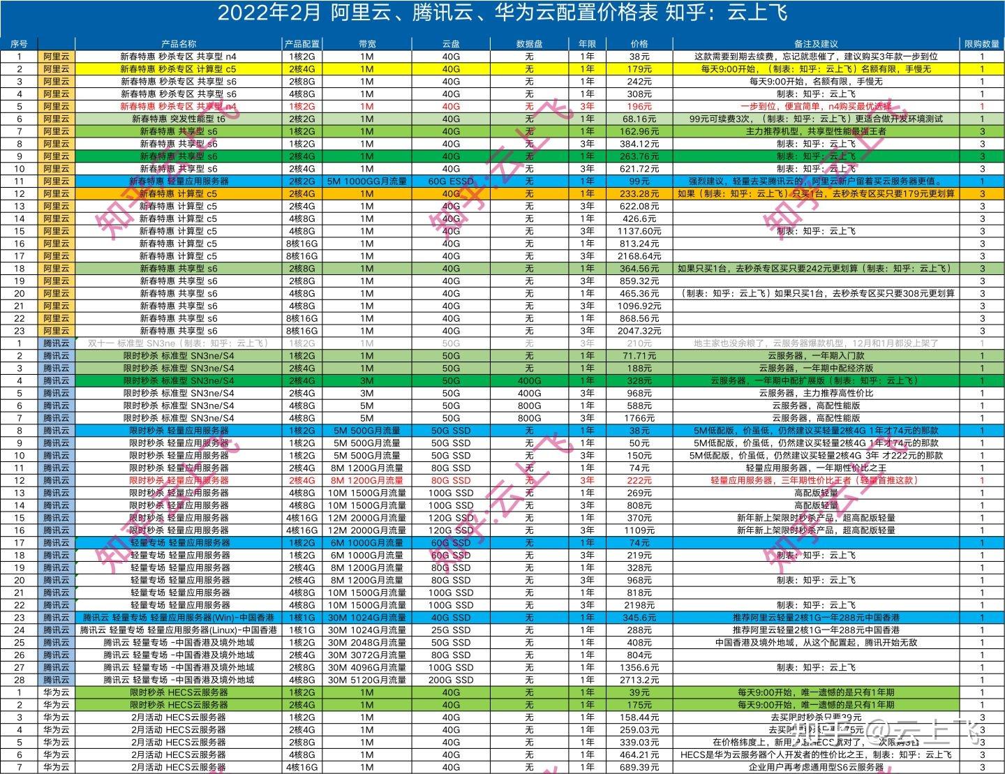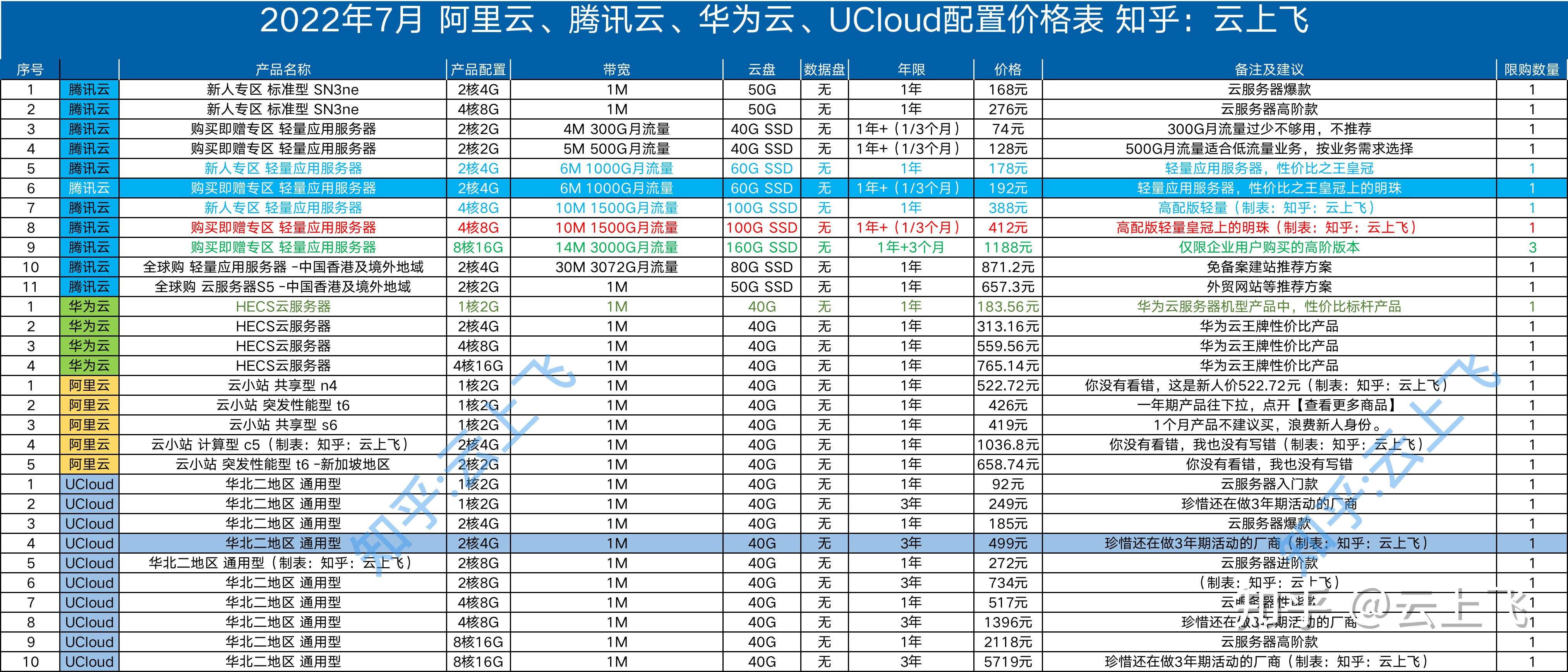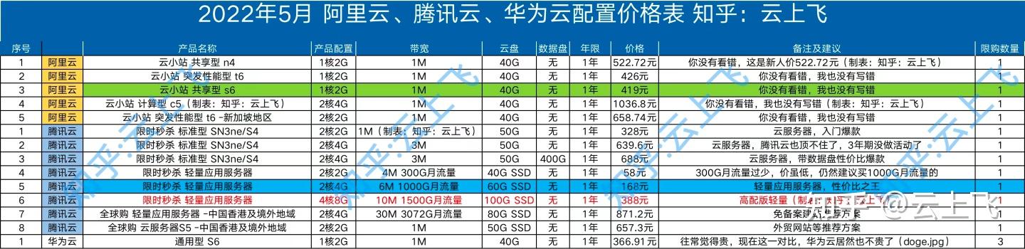 由于工作的原因,所以市面上主流的各家云服务器都有测试和使用过,我每月把市面上相对良心的云服务器配置价格列举出来了,同时给大家提前做好了值不值得买提示,只买对的,不买贵的。看完还有问题,欢迎大家留言点赞,留言板看到后会一一解答和回复。