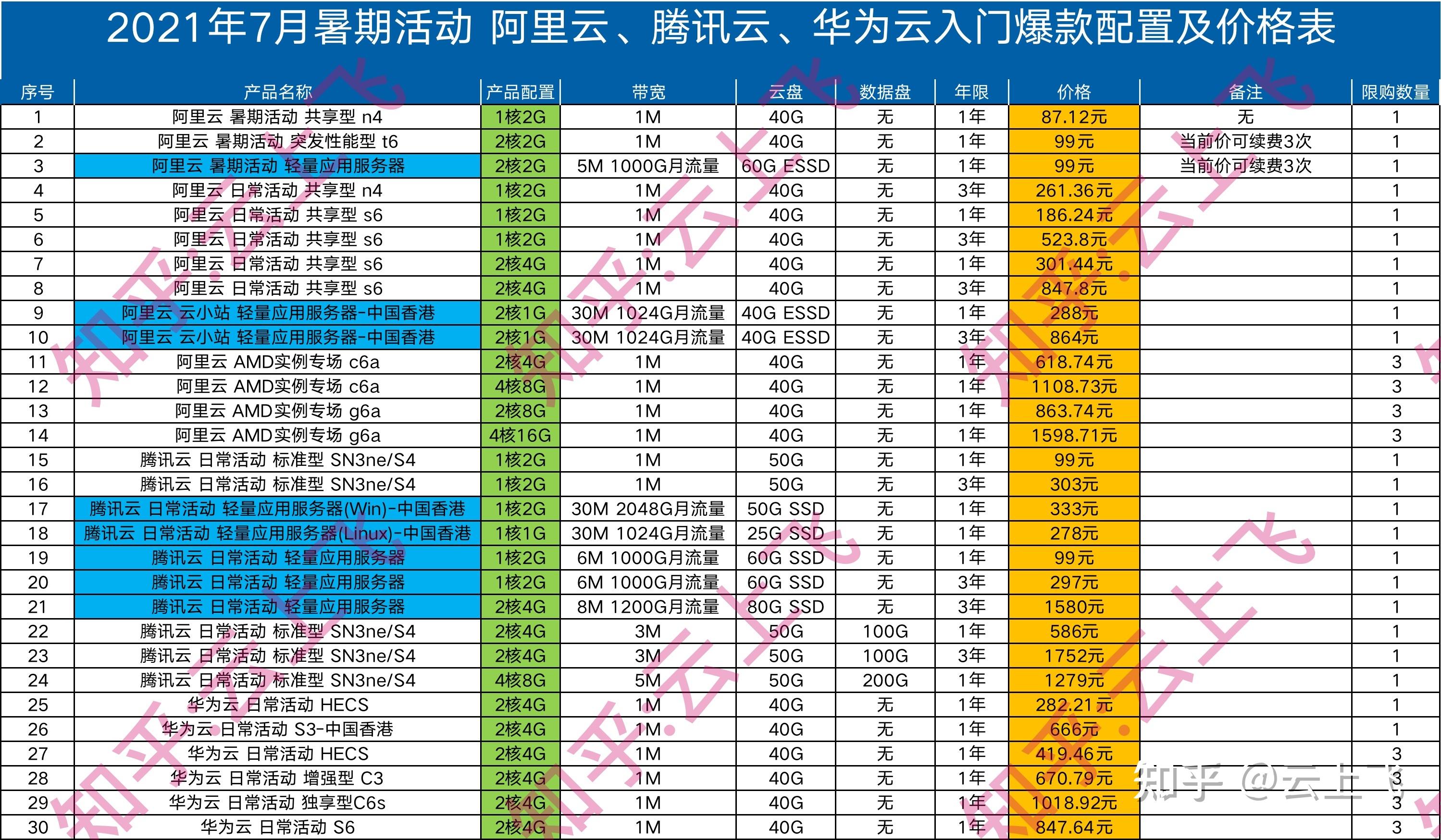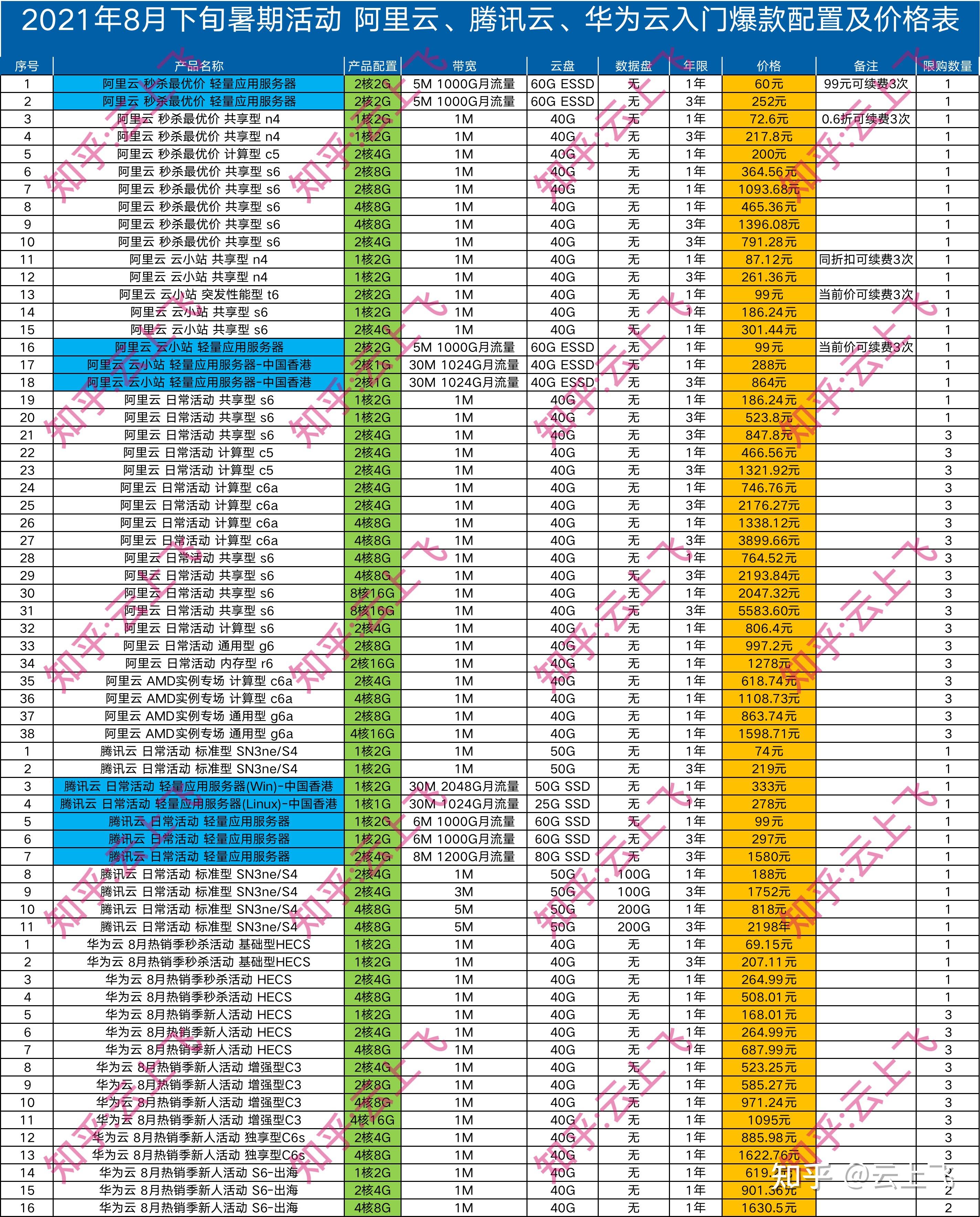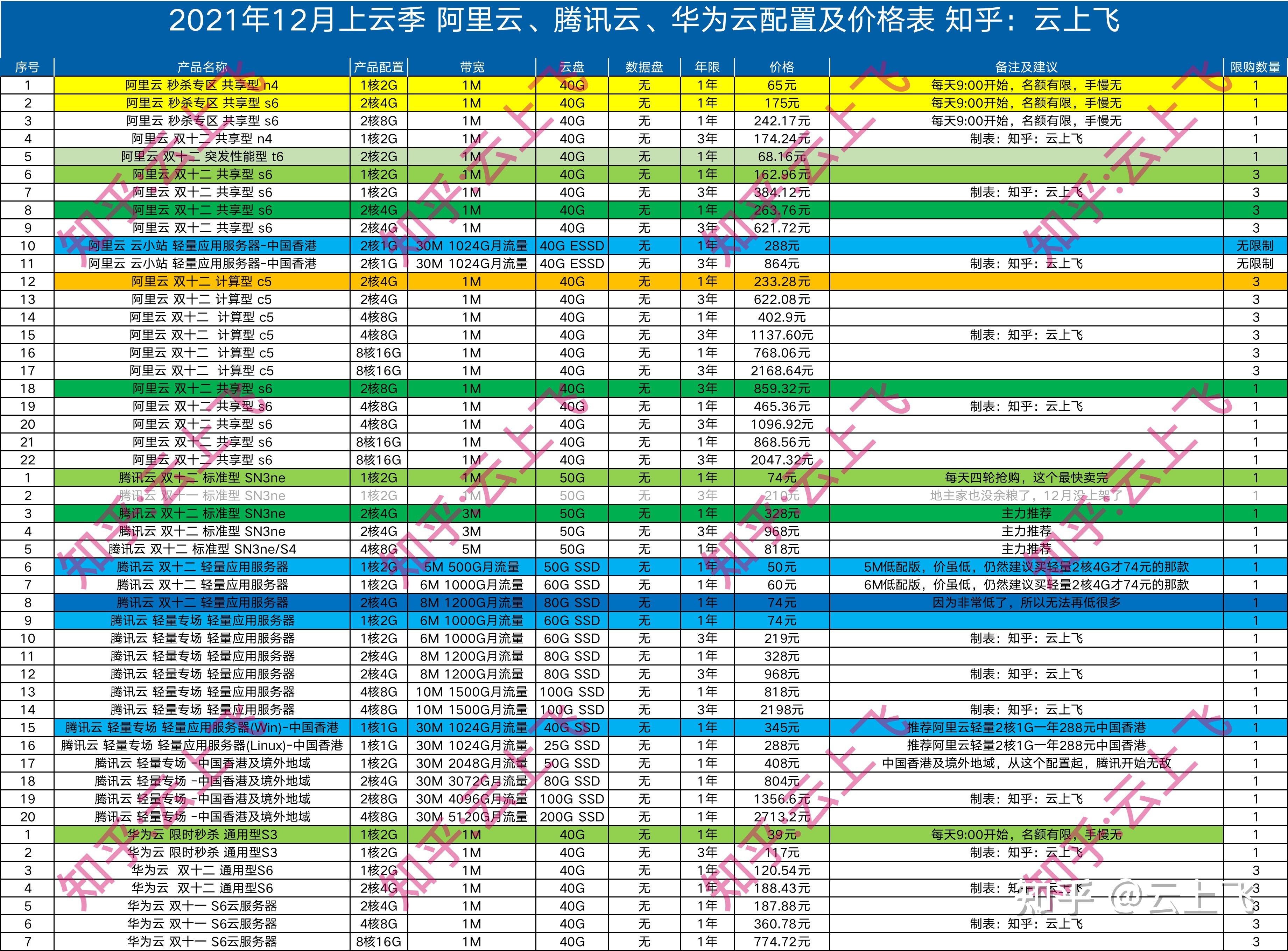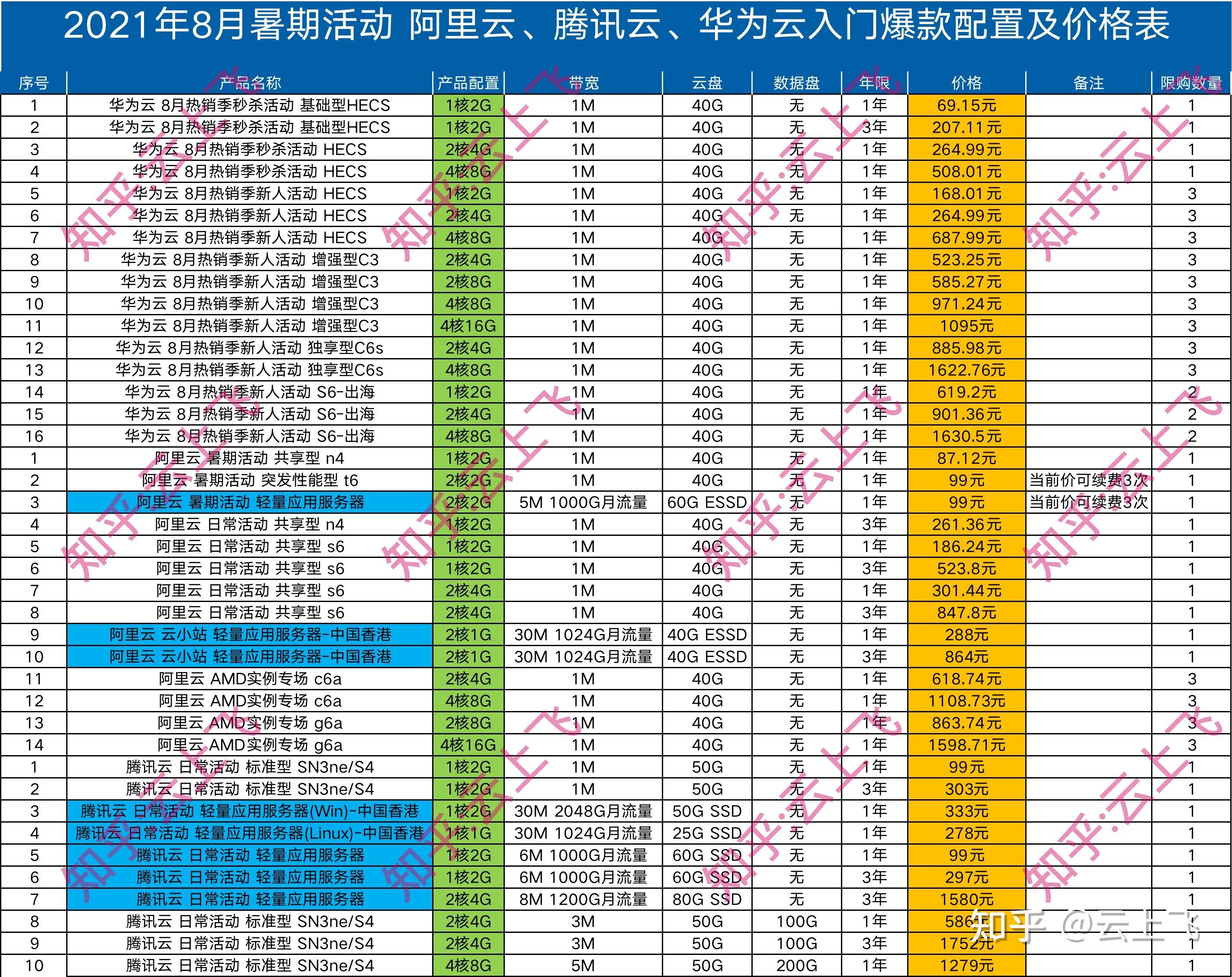 由于工作的原因,所以市面上主流的各家云服务器都有测试和使用过,我每月把市面上相对良心的云服务器配置价格列举出来了,同时给大家提前做好了值不值得买提示,只买对的,不买贵的。看完还有问题,欢迎大家留言点赞,留言板看到后会一一解答和回复。