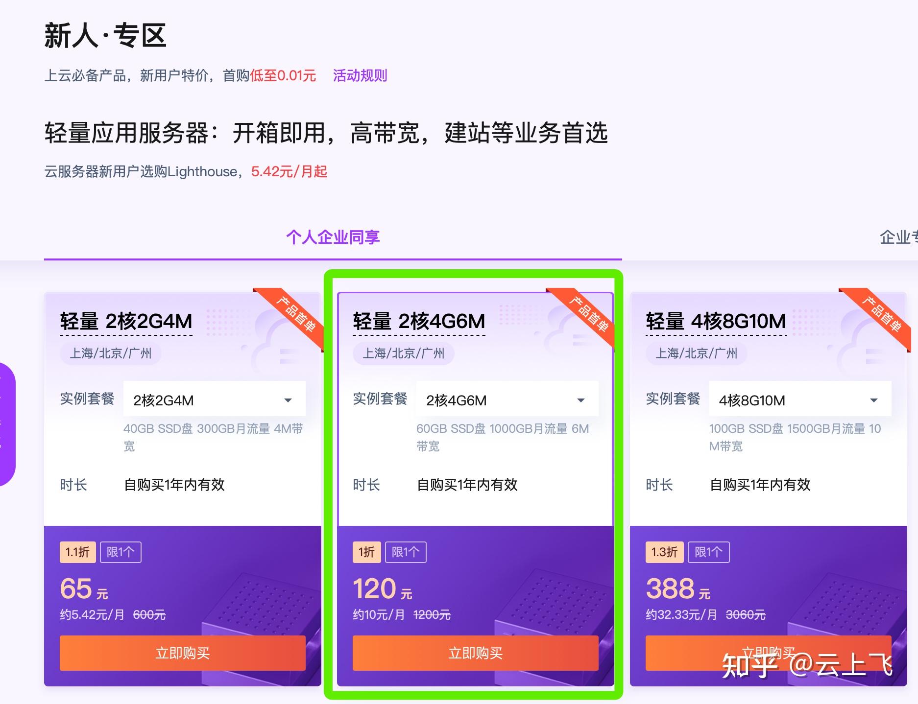#版权声明!本文由 云上飞 原创发布,非授权,不得转载!违者必究!新手用户,第一次买云服务器,为了学习建站或建博客的,买腾讯云轻量应用服务器120元爆款2核4G带宽6M这款,足够用了,这款也是我的主力机型之一,更多配置推荐,看左边目录跳转。