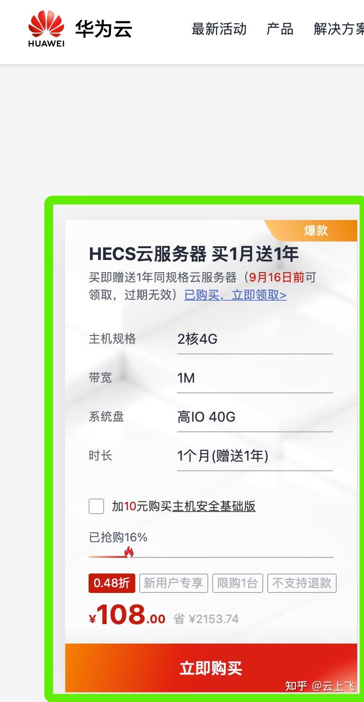 尤其是它还把爆款HECS配置的2核4G拿出来做标杆,买一个月送1年,其实就是1年1个月合计108元。 目前显示活动到9月16日,不懂会不会续期,所以趁早上车就对了。