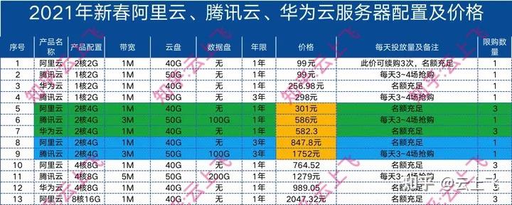 2021年新春阿里云、腾讯云、华为云服务器配置及价格