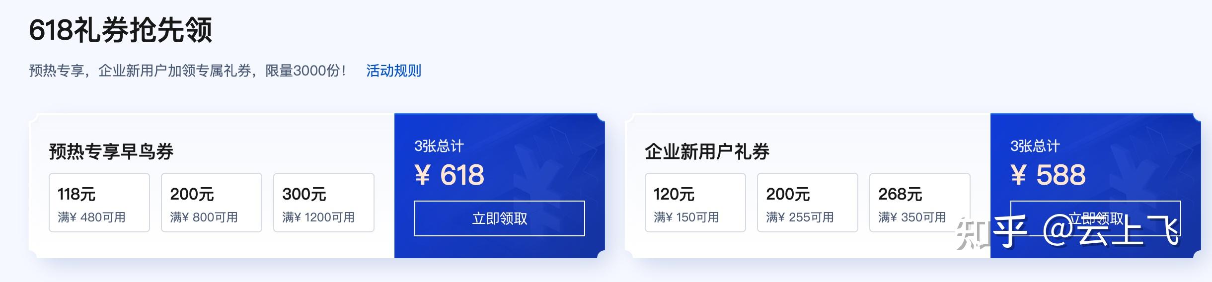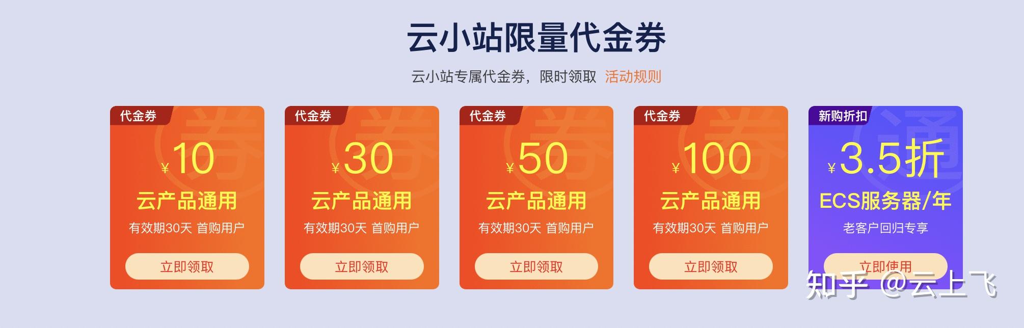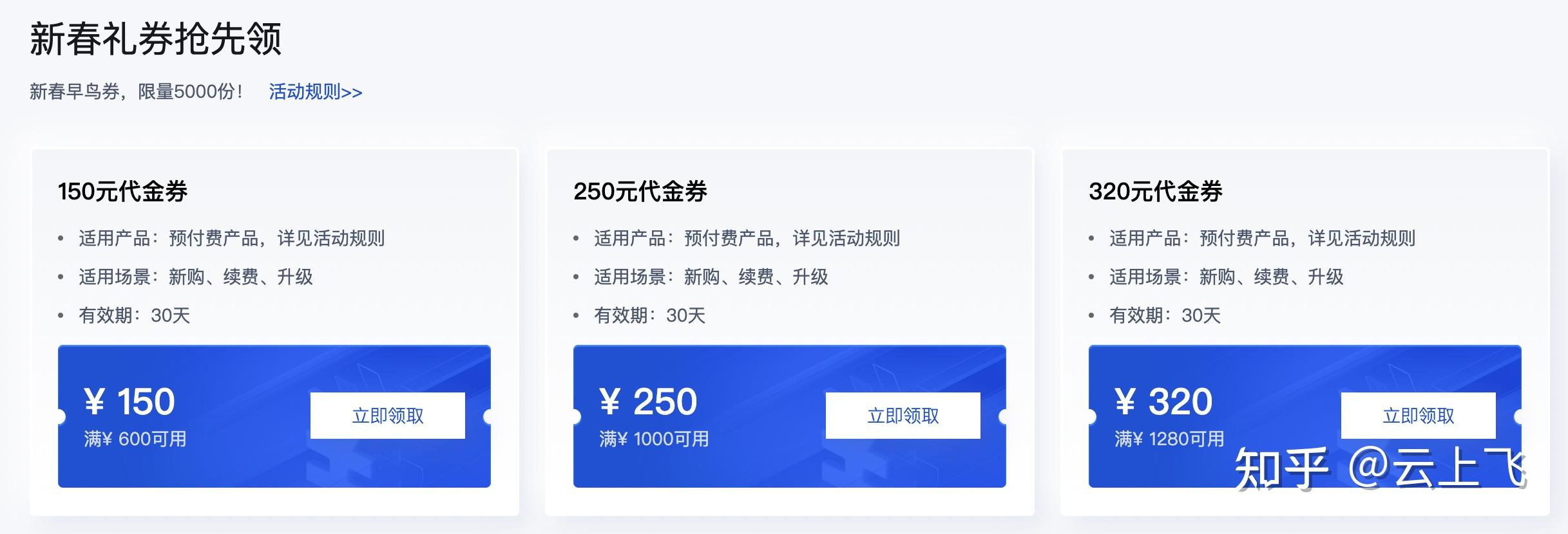 阿里云先领下面优惠券,有的优惠券是无门槛的,新老用户都能用,数量有限,先到先得。
