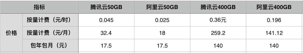 上图中,腾讯云高效云盘按量计费的价格,为根据官方产品页面给出的定价计算,包年包月价格为单独购买云盘时系统显示价格;阿里云高效云盘的价格根据其给出的费用规则计算。这里说明一点,腾讯云在单独购买云盘时,还只有包年包月这种模式,不够灵活。