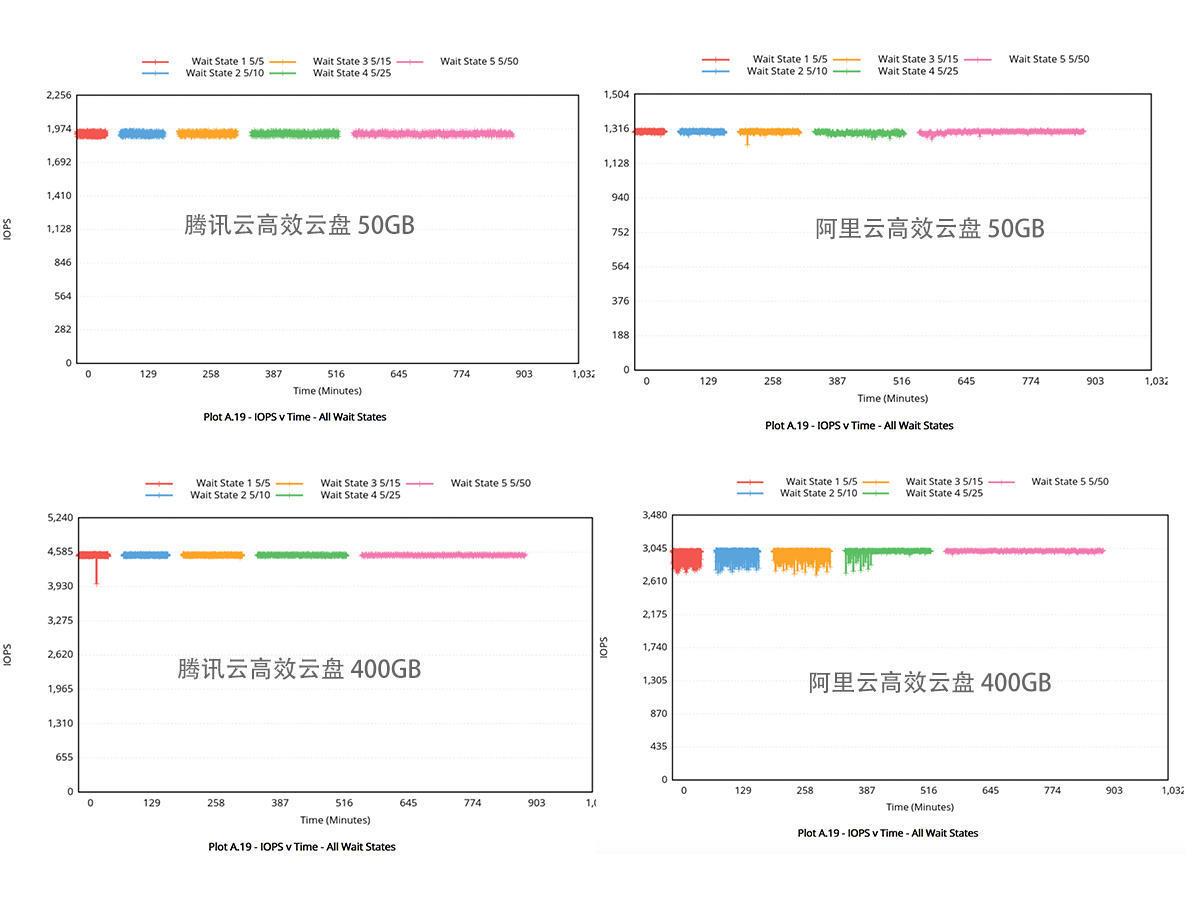 简单来说,就是腾讯云高效云盘的读写操作可同时达到预期性能峰值(数据块 16KB 以下)。这样,腾讯云的数据就可以解释的通了。