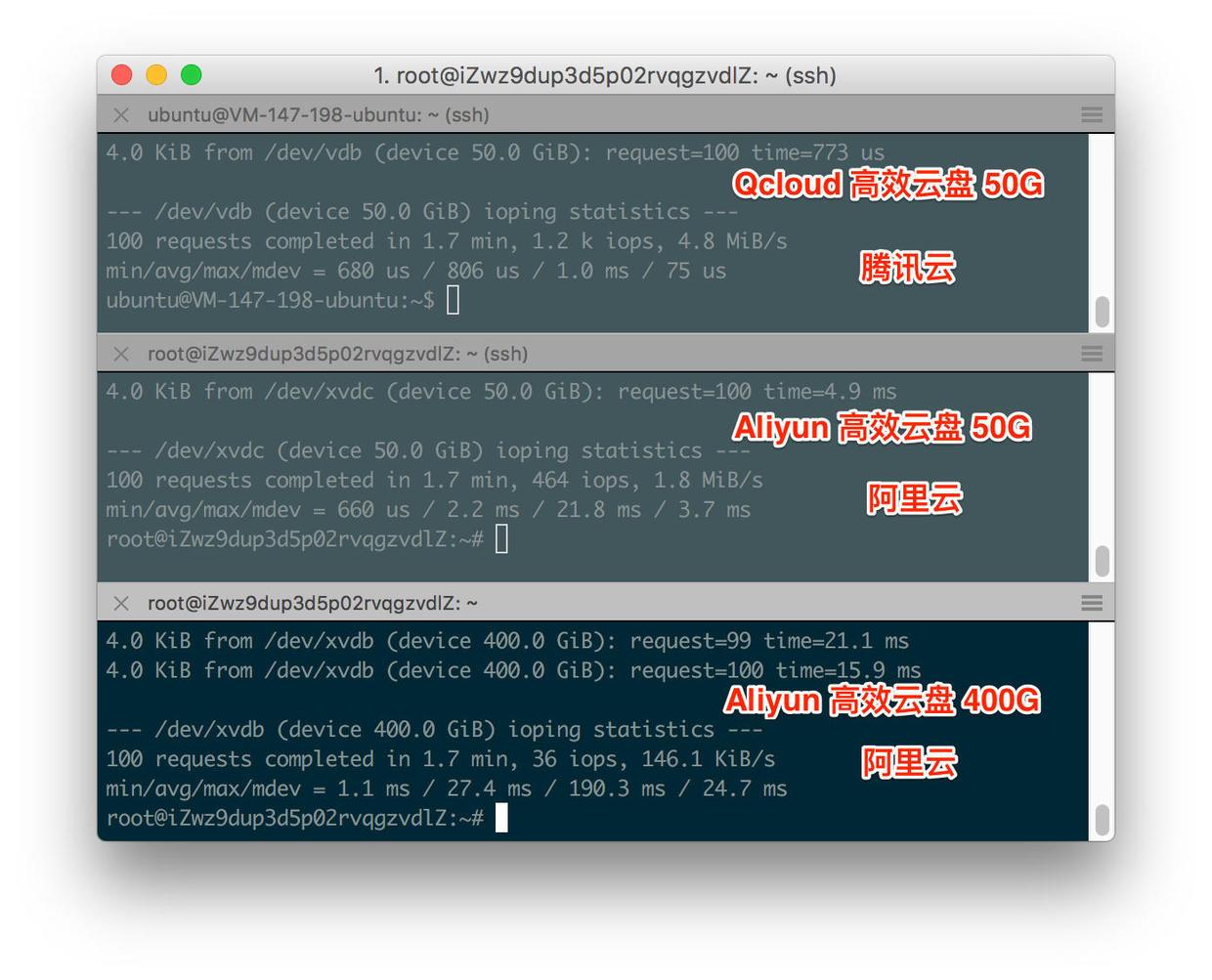 下一篇笔者将对比腾讯云和阿里云 SSD 云盘的性能。